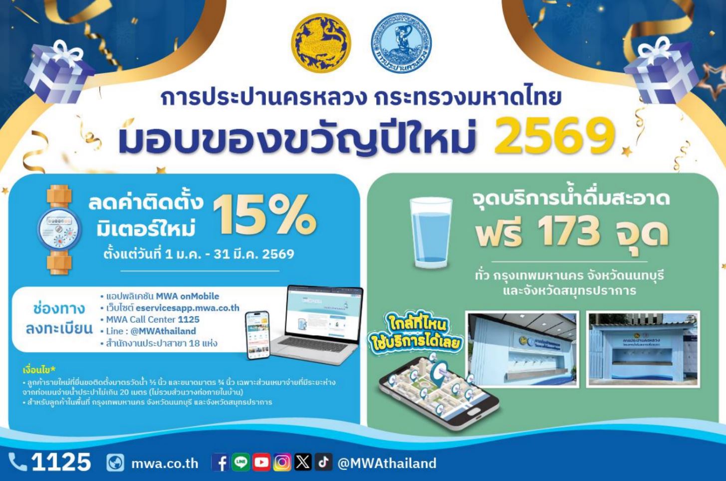 สวัสดีปีใหม่ 2569 การประปานครหลวง (กปน.) ชวนสะสม MWA Point ผ่านแอป MWA onMobile