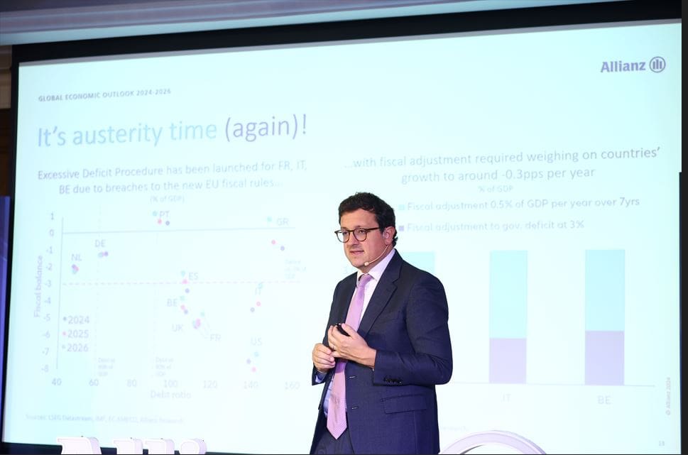 อลิอันซ์เปิดรายงานการวิเคราะห์แนวโน้มเศรษฐกิจโลกอย่างรอบด้านสำหรับปี 2567-2569 โดยคาดการณ์ว่าเศรษฐกิจโลกจะเติบโตในระดับปานกลางแต่จะมีเสถียรภาพท่ามกลางปัญหาที่ยังคงดำเนินต่อไป และคาดว่าจะเติบโตในอัตราเฉลี่ย 2.8% ต่อปี โดยเศรษฐกิจของสหรัฐอเมริกาจะเป็นกำลังสำคัญของการเติบโตในปี 2567 แม้จะยังคงมีความเสี่ยงที่เศรษฐกิจของสหรัฐอเมริกาจะถดถอย เศรษฐกิจโลกจะไม่ได้รับผลกระทบมากนัก และยุโรปจะมีการเติบโตที่ช้าแต่คงที่ มาตรการรัดเข็มขัด การขึ้นภาษี และกลยุทธ์ลดต้นทุนในทั้งสองภูมิภาคจะส่งผลต่อจีดีพี
