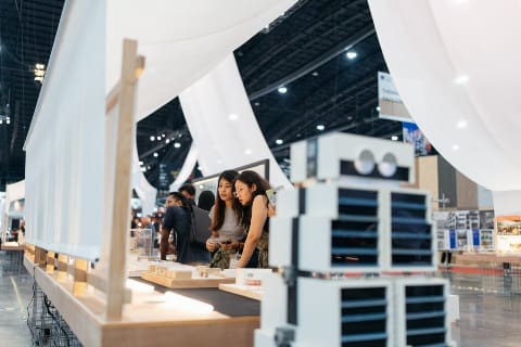 และปิดท้ายด้วยพื้นที่จัดแสดงรูปแบบพิเศษ Thematic Pavilion ที่พร้อมให้ทุกคนมาร่วมสัมผัสประสบการณ์จริง จำนวน 6 พื้นที่ ได้แก่ 1. Looklen Architects x S-ONE GROUP, 2. pbm X NIPPON PAINT, 3. Flat12x X VANACHAI GROUP, 4. A&A x FAMELINE, 5. ativich x VG, 6. POAR x WOODDEN
