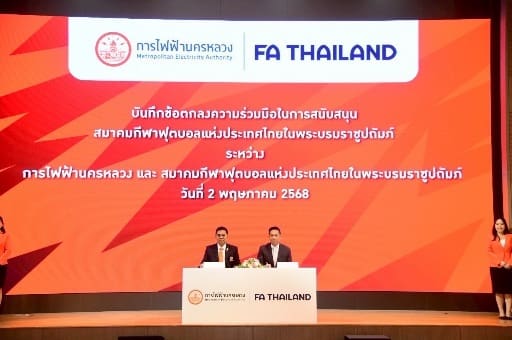 วันนี้ (2 พฤษภาคม 2568) นายวิลาศ เฉลยสัตย์ ผู้ว่าการ MEA หรือการไฟฟ้านครหลวง พร้อมด้วยนายอดิศักดิ์ เบญจศิริวรรณ อุปนายกสมาคมกีฬาฟุตบอลแห่งประเทศไทย ในพระบรมราชูปถัมภ์ ร่วมพิธีลงนามบันทึกข้อตกลงความร่วมมือสนับสนุนส่งเสริมกีฬาฟุตบอล ในพระบรมราชูปถัมภ์ ในการจัดการแข่งขันฟุตซอลรายการ “ฟุตซอลไทยลีก” ประจำปี 2568 พร้อมเปิดลีก MEA Futsal Thai league 2025 One for all, all for Futsal Thai “รวมพลคนรักฟุตซอล เชียร์ฟุตซอลไทย ให้ไปไกลกว่าเดิม” โดย MEA ให้การสนับสนุนเป็นจำนวนเงิน 5 ล้านบาท ในนามของ MEA Futsal Thai League โดยมี คณะผู้บริหารจากทั้งสองหน่วยงาน ร่วมเป็นเกียรติในพิธี ณ ห้องประชุม Auditorium ชั้น 6 อาคารวัฒนวิภาส การไฟฟ้านครหลวง สำนักงานใหญ่