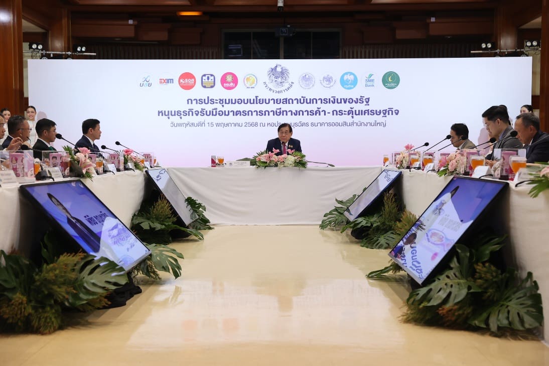 นายพิชัย ชุณหวชิร รองนายกรัฐมนตรีและรัฐมนตรีว่าการกระทรวงการคลัง เปิดเผยว่า ตามที่รัฐบาลโดยนางสาวแพทองธาร ชินวัตร นายกรัฐมนตรี มอบหมายกระทรวงการคลังให้ออกมาตรการกระตุ้นเศรษฐกิจ และช่วยเหลือภาคธุรกิจไทย ที่ได้รับผลกระทบจากการประกาศนโยบายภาษีสหรัฐอเมริกาเป็นการเร่งด่วนนั้น กระทรวงการคลังจึงมีนโยบายให้สถาบันการเงินของรัฐปรับกลยุทธ์การดำเนินงาน โดยการลดเป้าหมายกำไรจากการทำธุรกิจ เพื่อจัดสรรเม็ดเงินงบประมาณมาจัดทำโครงการกระตุ้นเศรษฐกิจและช่วยเหลือบรรเทาผลกระทบที่เกิดขึ้นแก่ผู้ประกอบการ โดยสถาบันการเงินของรัฐทั้ง 7 แห่ง อยู่ระหว่างเตรียมดำเนินการตามนโยบาย ประกอบด้วย ธนาคารออมสิน ธนาคารเพื่อการเกษตรและสหกรณ์การเกษตร (ธ.ก.ส.) ธนาคารอาคารสงเคราะห์ (ธอส.) ธนาคารพัฒนาวิสาหกิจขนาดกลางและขนาดย่อมแห่งประเทศไทย หรือ SME D Bank ธนาคารเพื่อการส่งออกและนำเข้าแห่งประเทศไทย หรือ EXIM Bank ธนาคารอิสลามแห่งประเทศไทย และบรรษัทประกันสินเชื่ออุตสาหกรรมขนาดย่อม (บสย.)