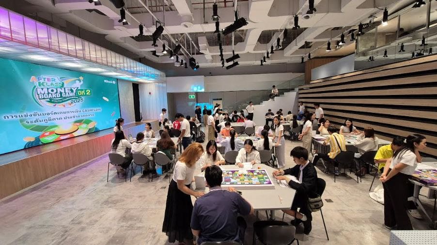กิจกรรม AFTERKLASS Money Board Game Youth Tournament 2025 จัดขึ้นระหว่างเดือนมีนาคม – พฤษภาคม 2568 โดยเปิดรับสมัครเยาวชนระดับมั ธยมศึกษาเข้าร่วมการแข่งขันชิ งแชมป์บอร์ดเกมการเงิน CASHFLOW ใน 4 ภูมิภาคทั่วประเทศ ได้แก่ เชียงใหม่ ขอนแก่น สงขลา และกรุงเทพมหานคร มีเยาวชนที่ผ่านการคัดเลือกเข้ าสู่รอบชิงชนะเลิศระดับประเทศ ภูมิภาคละ 5 คน จำนวนรวมทั้งสิ้น 20 คน โดยระหว่างกิจกรรม น้อง ๆ ได้เรียนรู้การตั้งเป้าหมายในชี วิต การวางแผนทางการเงิน และการสร้างรายได้ทั้งในรูปแบบ Active Income และ Passive Income ผ่านการลงมือทำจริง รวมถึงการบริหารความเสี่ยง และการเตรียมเงินสำรองฉุกเฉิน ซึ่งช่วยเสริมสร้างพื้ นฐานทางการเงินที่แข็งแกร่ง เสริมทักษะการคิดเชิงวิเคราะห์ เพื่อสร้างอิสรภาพทางการเงิ นในแบบที่เหมาะสมกับตนเอง ผ่าน บอร์ดเกมการเงิน CASHFLOW ที่ ได้รับความนิยมในระดับนานาชาติ