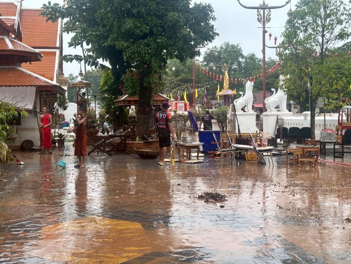 นายพรชัย ไชยโย ผู้อำนวยการธนาคารออมสินเขตน่าน เป็นผู้แทนส่งมอบเครื่องฉีดน้ำแรงดันสูงและอุปกรณ์ทำความสะอาดให้แก่วัดภูมินทร์ เพื่อสนับสนุนการฟื้นฟูบริเวณวัดที่ได้รับผลกระทบจากอุทกภัย พร้อมกันนี้ ธนาคารยังได้จัดส่งทีมเจ้าหน้าที่และพนักงานธนาคารออมสินจิตอาสา ลงพื้นที่ช่วยฟื้นฟูโรงพยาบาลน่าน โดยร่วมทำความสะอาดพื้นที่ภายในอาคารศิริเวชรักษ์ ชั้น 1 บริเวณห้องเวชระเบียน ห้องตรวจโรค ห้องตรวจเลือด ห้องแยกโรค ห้องตรวจคลื่นหัวใจ และห้องฉีดยาทำแผล