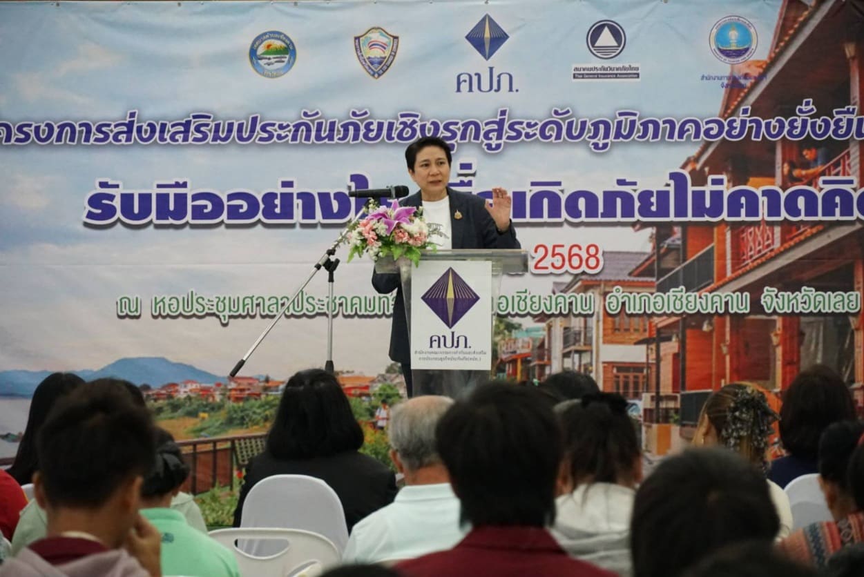 เมื่อวันที่ 17 กันยายน 2568 สำนักงานคณะกรรมการกำกับและส่งเสริมการประกอบธุรกิจประกันภัย (สำนักงาน คปภ.) นำโดย นางสาววสุมดี วสีนนท์ รองเลขาธิการ ด้านกำกับคนกลางและประกันภัยภูมิภาค เปิดตัว “การส่งเสริมประกันภัยเชิงรุกสู่ระดับภูมิภาคอย่างยั่งยืน ปี 2568” ณ หอประชุมศาลาประชาคม อำเภอเชียงคาน จังหวัดเลย โดยมีหน่วยงานภาครัฐ เอกชน องค์กรท้องถิ่น และภาคอุตสาหกรรมประกันภัย เข้าร่วมงานอย่างคับคั่ง ทั้งนี้ โครงการดังกล่าวมุ่งสร้าง Insurance Literacy ความรู้ความเข้าใจด้านการประกันภัยให้แก่ประชาชน ในพื้นที่เป้าหมาย พร้อมยกระดับระบบการประกันภัยให้เป็นเครื่องมือสำคัญในการบริหารความเสี่ยง ทั้งในมิติชีวิต ทรัพย์สิน และธุรกิจ โดยเฉพาะเมืองท่องเที่ยวที่มีเสน่ห์อย่างเชียงคาน เมืองบ้านไม้โบราณที่ดึงดูดนักท่องเที่ยวทั้งชาวไทยและชาวต่างชาติ