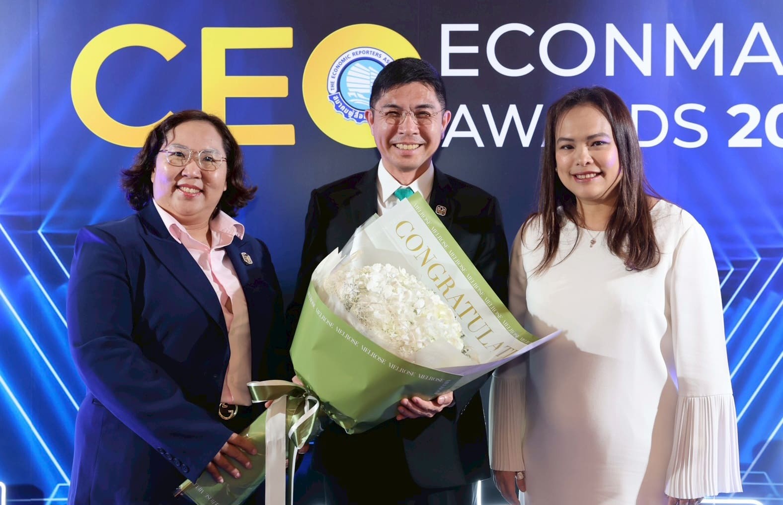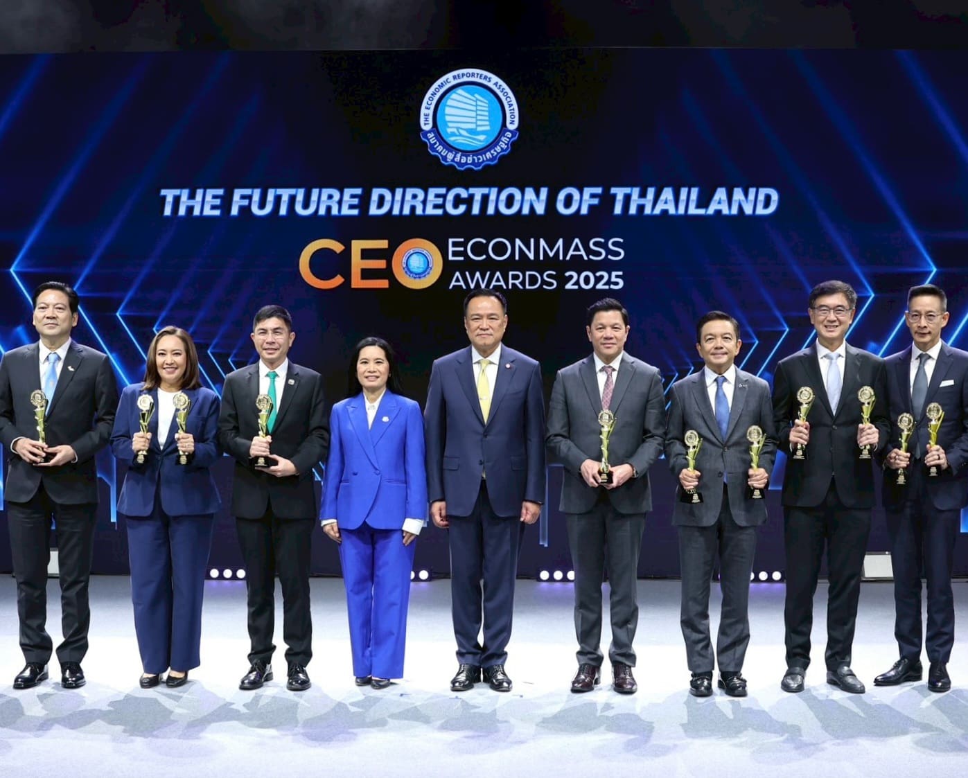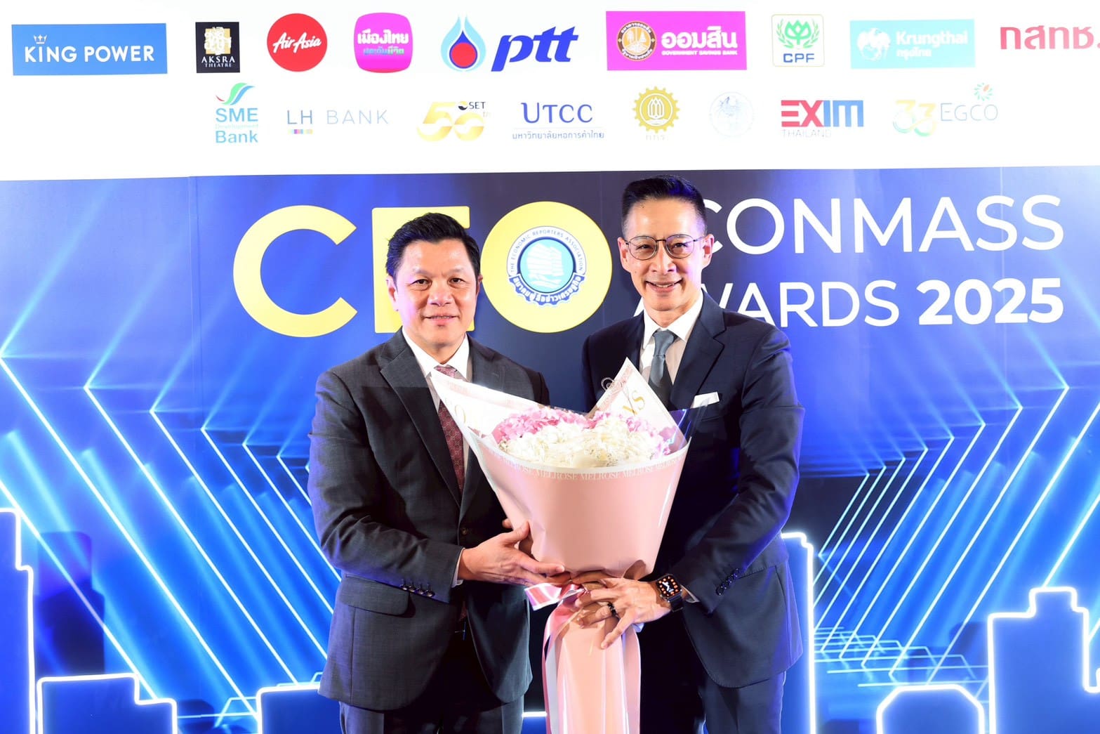 นางลภาวรรณ จันทร์กระจ่าง รองผู้อำนวยการธนาคารออมสิน รักษาการผู้อำนวยการธนาคารออมสิน และนางสาววชิรา การสุทธิ์ รองผู้อำนวยการธนาคารออมสิน เป็นตัวแทนธนาคาร ร่วมแสดงความยินดีแก่ นายวิทัย รัตนากร ผู้ว่าการธนาคารแห่งประเทศไทย ในโอกาสได้รับรางวัลสุดยอดซีอีโอขวัญใจสื่อมวลชน (Popular Vote) จากนายอนุทิน ชาญวีรกูล นายกรัฐมนตรีและรัฐมนตรีว่าการกระทรวงมหาดไทย ภายในงาน CEO ECONMASS AWARDS 2025