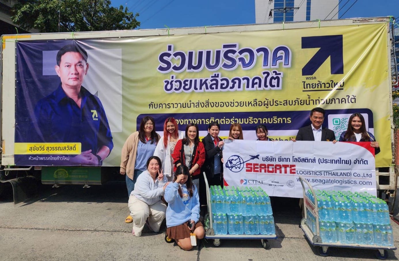 ท่านที่ประสงค์ร่วมบริจาคสามารถส่งต่อสิ่งของได้ที่ ศูนย์ประสานงานพรรคไทยก้าวใหม่ อาคาร ไอ ทาวเวอร์ วิภาวดี จตุจักร กทม. มีรถบรรทุกขนาดใหญ่จอดอยู่ สังเกตเห็นได้ง่าย หรือ โทร.0835374327